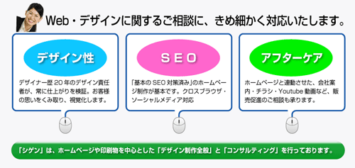 小回りの良さと、一人一人のお客様を大事にする姿勢で、Webサイトの効果的な構造や、売れる仕組みを御社に御提案いたします。